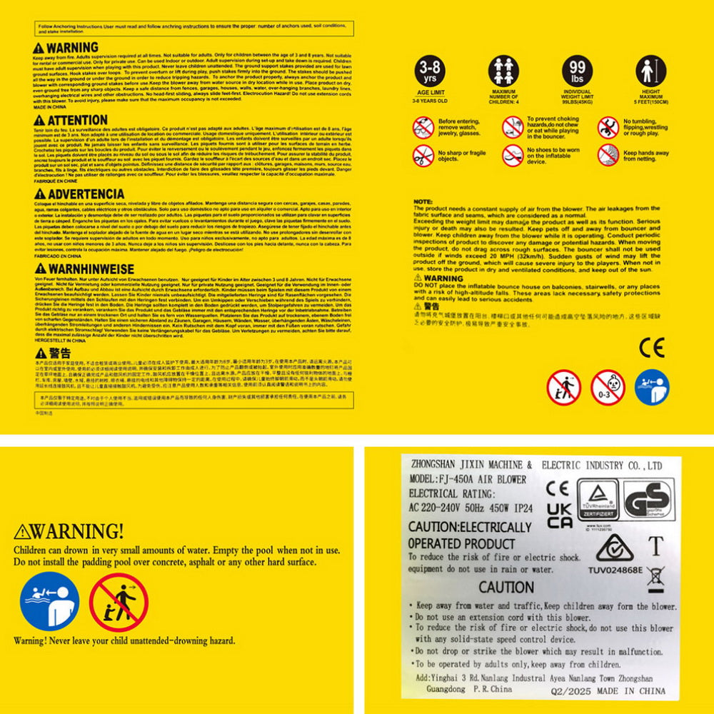 2. Do not set up in windy or rainy conditions: sudden gusts of wind may lift the product off the ground.