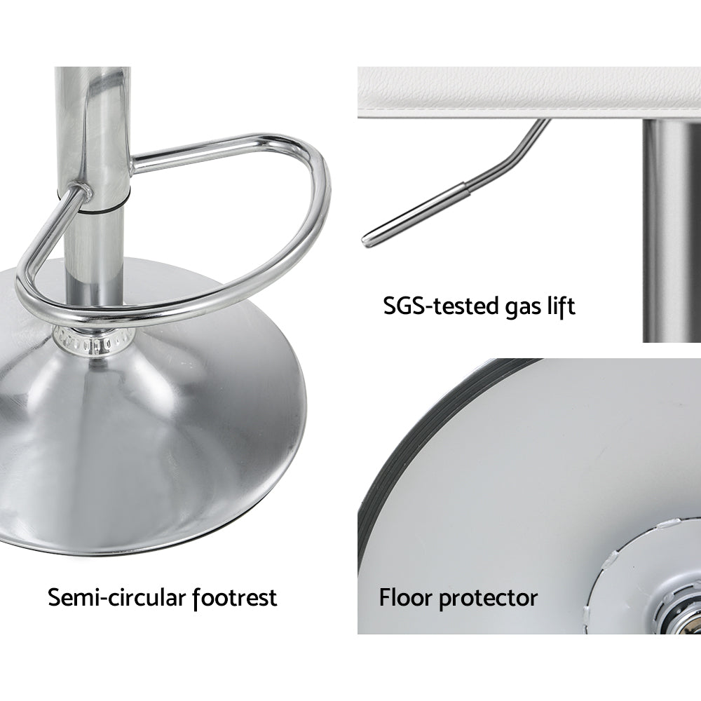For a gorgeous contemporary addition to your modern home, the Artiss Wade Bar Stool is what you need for your kitchen island, bar or dining area. Crafted with care and finesse, the stool effortlessly blends with your existing d茅cor, providing style and comfort. Sink into the luxuriously thick high-resistance foam enveloped in premium white PU leather that covers the smooth wave-styled seat. With a 360-degree swivel, you can effortlessly glide from one conversation to another. Adjust the height of the chair for the perfect fit at any counter or bar. The sturdy steel base with a semi-circular footrest provides the ultimate security, and the base is fitted with an anti-slip floor protector to keep the chair in one place and prevent scratches to your floors. Easy to clean and even easier to install, you can elevate your space right away with a set of Wade Bar Stools from Artiss.