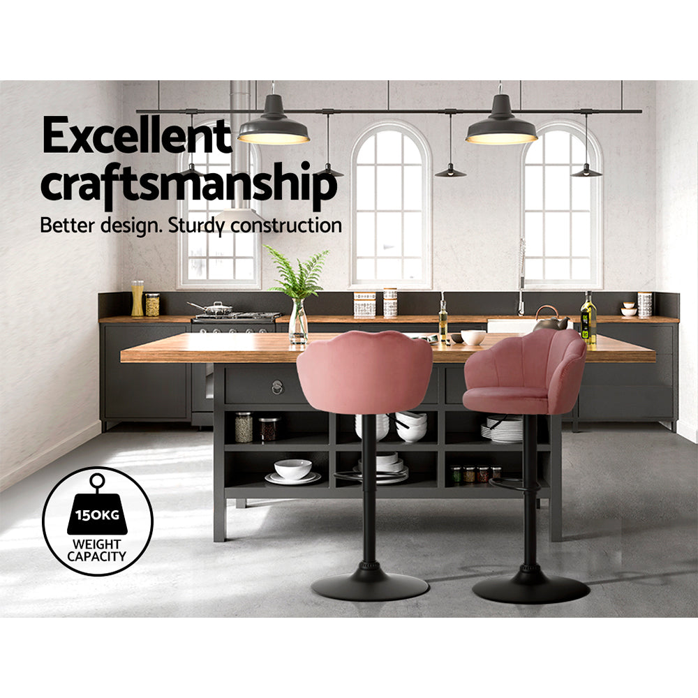 Artiss 2x Bar Stools Gas Lift Velvet Pink