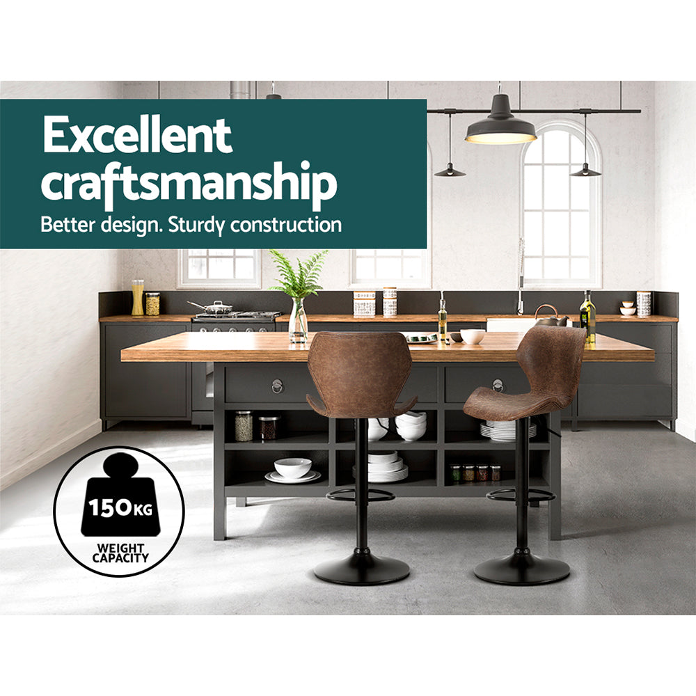 Not an ordinary piece of furniture but stands out in every aspect, whether it's craftsmanship, style, upholstery, comfort, or quality that speaks for itself. If you're after achieving an elegant vintage yet contemporary feel in your space, our Artiss' Frawley bar stools with an elegant back and seat design are just perfect. They're great for catchups over coffee with friends, a jam session with the band, or daily living. Our bar stools are uniquely designed that will make you want them in your space. You can style our Frawley bar stools anywhere, from living rooms to kitchen and the bar section, they will effortlessly fuse in any d茅cor and lend an elegant vintage feel to your space. These bar stools can even be used as an impromptu seat when you need extra sitting space. Featuring a unique design with beautiful PU vintage leather upholstery, our bar stools have thick foam soft padded seats, sturdy powder-coated pedestal base, adjustable height with SGS-tested gas lift, and floor protector for ultimate stability and scratch-free floors. Their solid structure ensures longlasting use and superb durability. They also feature 360藲 rotatable seat so you can face any direction for ease of conversing with guests and family. Our Frawley bar stools make a timeless piece of furniture, and with two colour options, you can choose that best complements your space and suits your taste. Artiss' Frawley bar stools would make a gorgeous addition to your space. Shop them today!