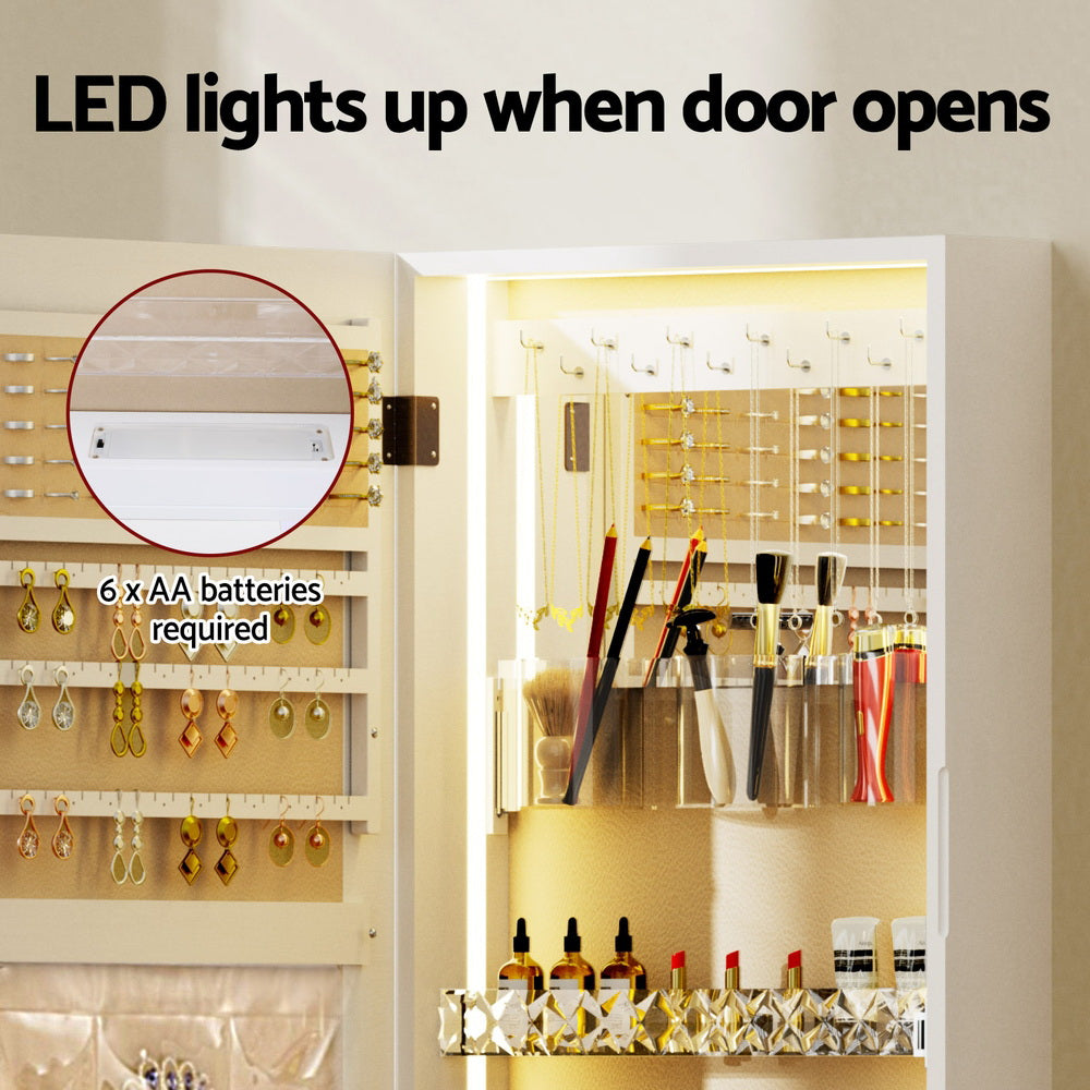 Discover the ultimate Artiss Jewellery Cabinet: crafted from sturdy MDF with ample storage, LED-lit interior, built-in makeup mirror, soft flocking lining, and easy assembly. Ideal for organising and showcasing your collection elegantly.