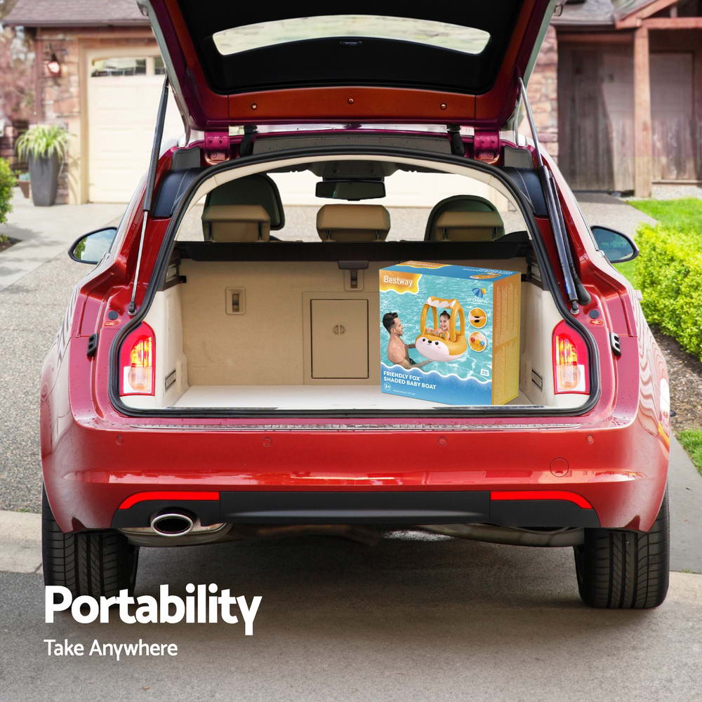 You know you're on to something awesome in the pool with our Bestway Inflatable Floats. Featuring a very cute fox design, built of sturdy PVC, the Float is durable and comprised air chambers. The boat features an enclosed tube with 3 moving, colorful balls that slide around as the boat moves and make a fun, tinkling sound to delight your little one. The boat also features a sunshade to protect your child as they splash and play. The shade is attached with velcro and can be easily removed for entry or exit, so your child is ready to float in minutes! So get ready for summer with the Bestway Inflatable Floats and have a splashing great ride. Get yours today.