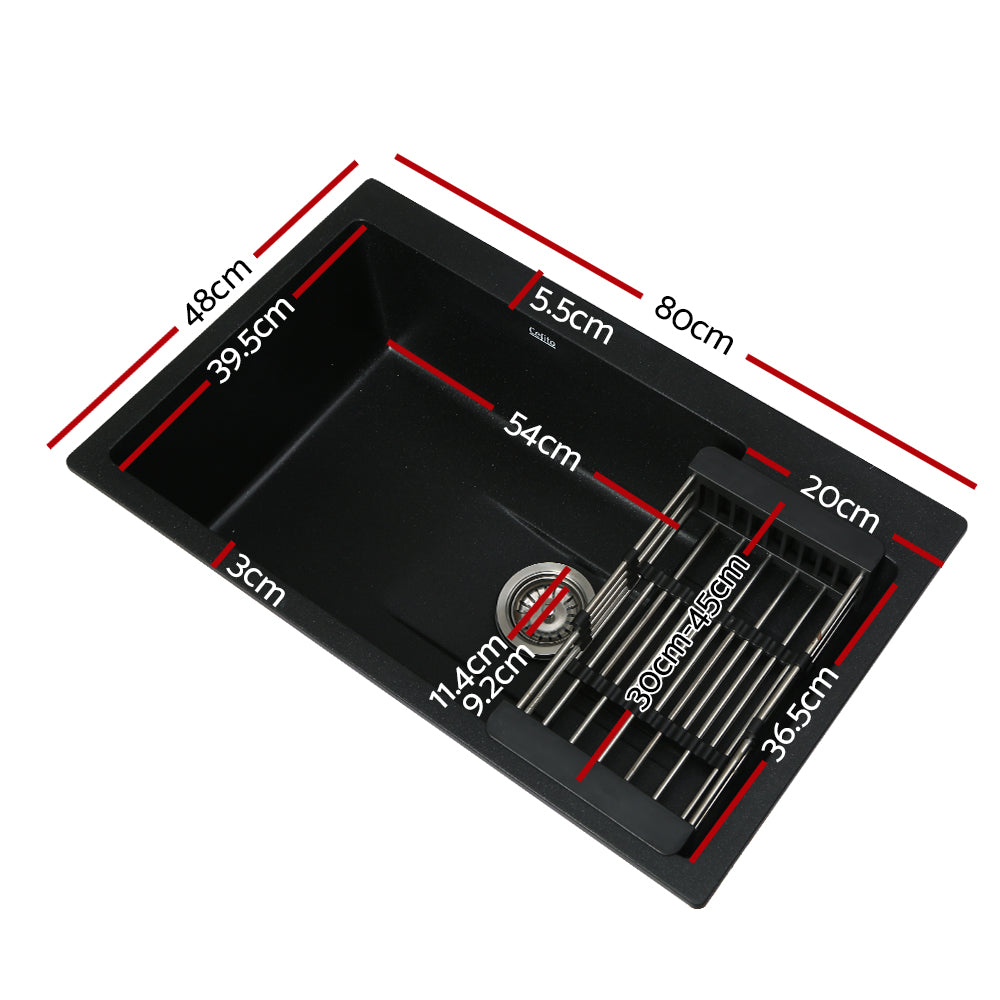 Cefito Kitchen Sink 80X48CM Granite Stone Kitchen Sinks in Black