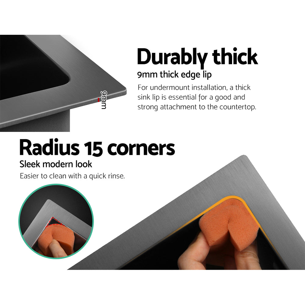 Your beautiful home certainly deserves the best of quality fittings and appliances. More so for your kitchen where meals should be prepared with safe, hygienic and food-grade equipment. That is why our Cefito Stone Sink is perfectly suited for your fine kitchen. Made of premium-quality black granite stone composite (80% granite), our 9mm thick stone sink with a silky textured surface not only look fabulous, but is also extremely durable and longlasting. Every bit of the sink is non-toxic, lead-free and highly resistant to heat, scratches, stains and dirt. Oil will not adhere to it and neither does it fade over consistent or heavy-duty use. The quality finish along with the R15 rounded corners mean the stone sink is completely easy to clean and maintain. Suitable for drop-in, flush or under mount installation, our stone sink also includes a 304 stainless steel corrosion-resistant waste strainer. With its contemporary finish, our stone sink is a definite stand-out in your esteemed kitchen.