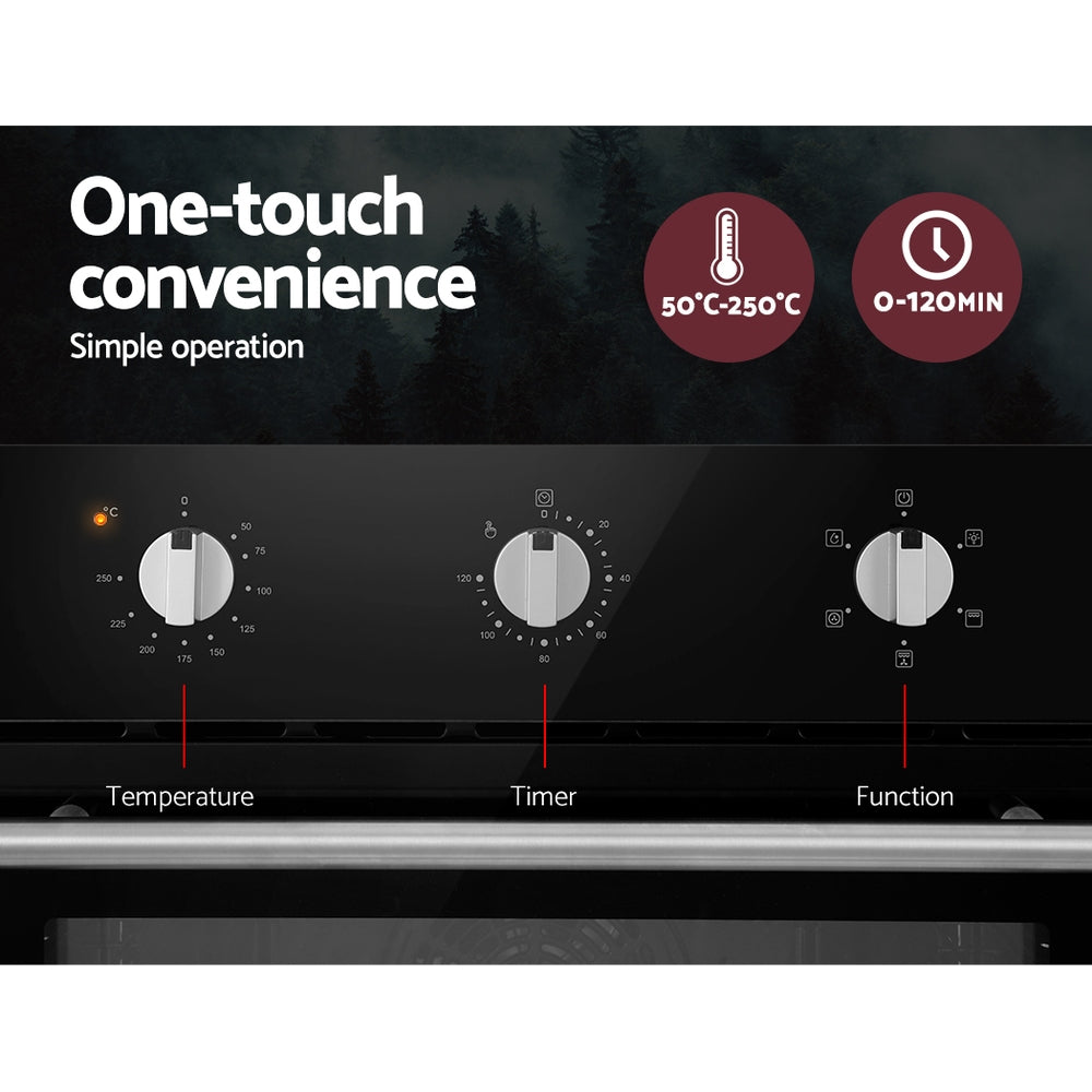 The Devanti 70L Built-in Oven is a must-have for any kitchen. With its large capacity and a variety of unique, useful functions, you'll be able to cook a full range of amazing dishes to impress friends and family. Made from tough food-grade stainless steel, a rust and corrosion-resistant internal enamel coating and durable tempered glass, our oven will withstand even the toughest of cooks. Removable trays can be reconfigured into 5 flexible positions. It has 5 auto-cooking modes, a 120-minute timer, automatic shut-off, a cool touch handle and a built-in light, so you can control every aspect of cooking from beginning to end. Easy to operate and even easier to clean, the Devanti Built-in Oven is your essential cooking companion.