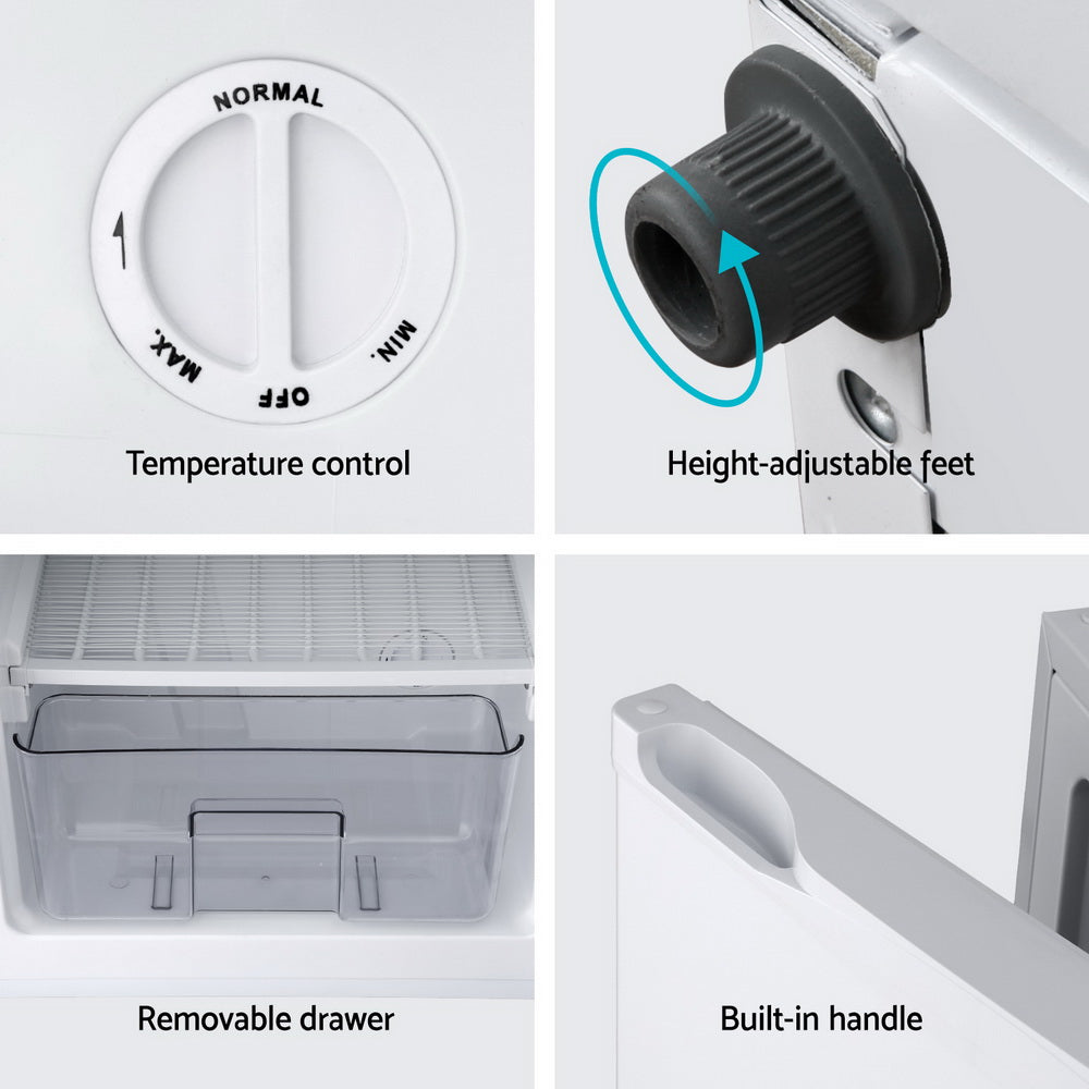 Constructed with a durable PVC door seal gasket and a quiet operation design, the Devanti Upright Freezer offers a hassle-free experience. The built-in handle and removable drawer make access and organization a breeze, while the height-adjustable feet allow for versatile placement.