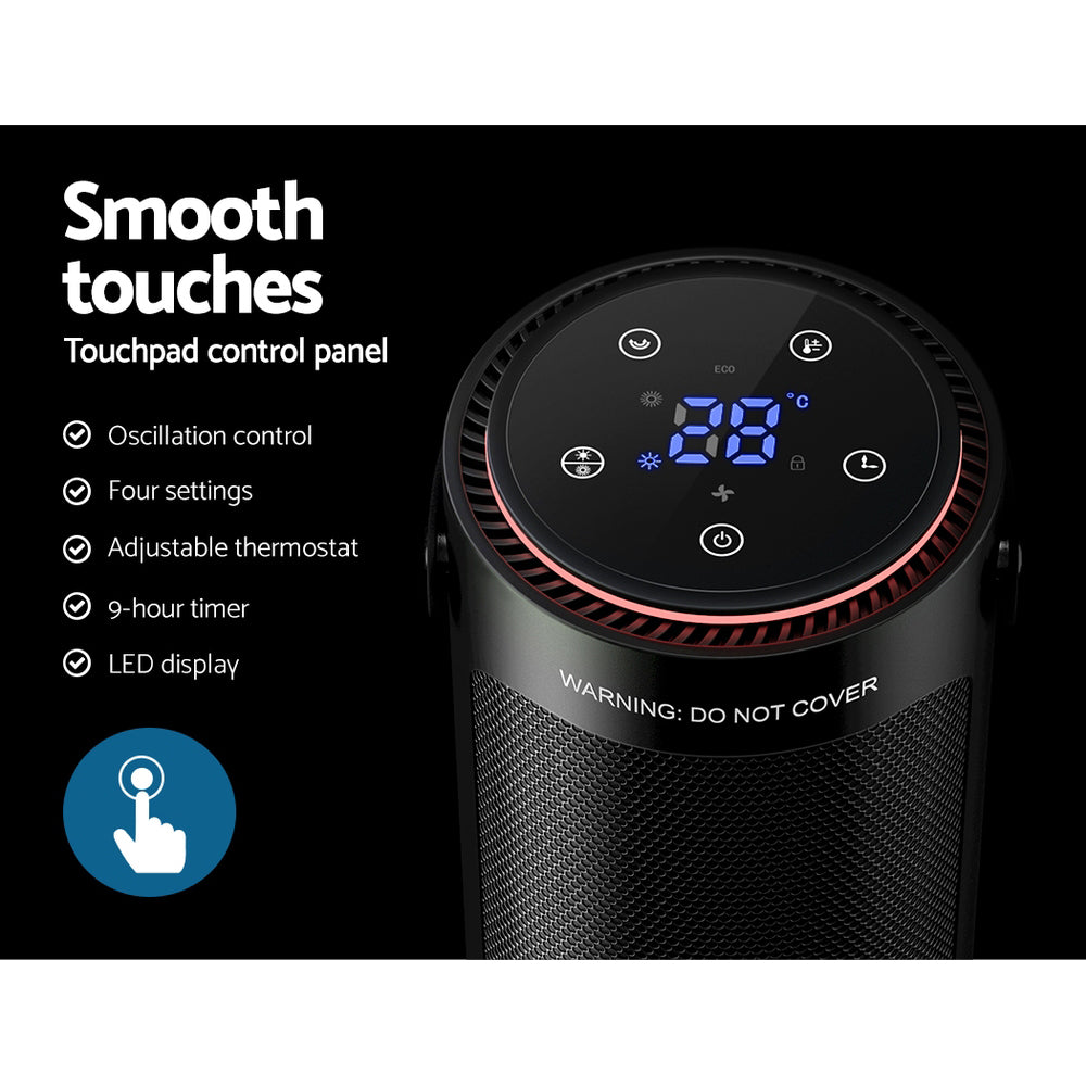 Need a little extra heating to get through winter? The Devanti Ceramic Tower Heater is here to solve your winter blues. With its high-quality rapid PTC heating system and fan system, the heater will have you warm in no time at all. It has four unique modes (fan, warm air, hot air and ECO mode) so you’re always at the perfect temperature. The ECO energy-saving mode cycles low and high heat at 24 degrees to save on energy costs. It uses wide-angle oscillation to evenly heat your space. Easily control the heater with the top touch control panel: adjust the thermostat, oscillation and heating mode at any time. Use the nine-hour timer with auto shut-off to strategically heat your home and save energy. Best of all, the heater has built-in safety features such as an anti-scald protective mesh, a safety cut-off switch in case of tipping and overheating protection. For maximum comfort and warmth through the winter months, you can’t go wrong with a Devanti Ceramic Tower Heater.
