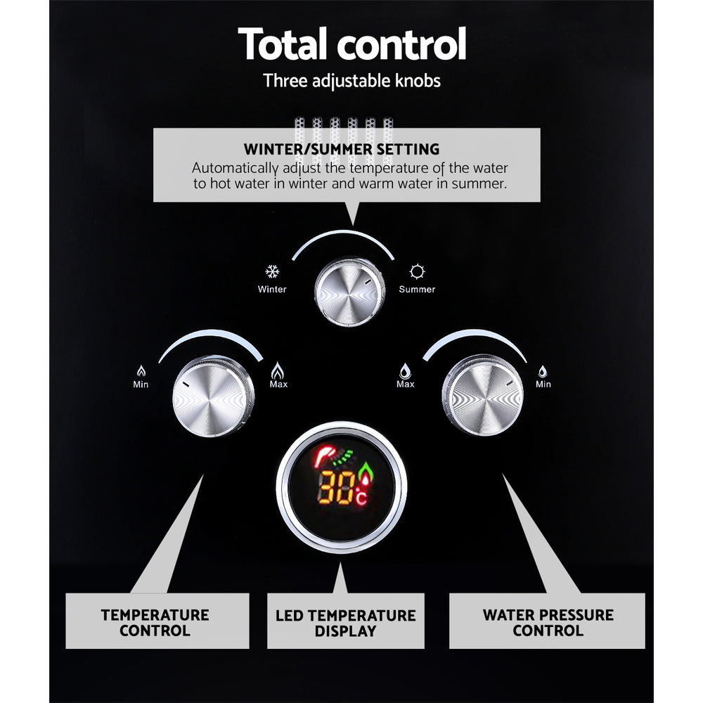 Devanti Portable Gas Water Heater 8L/Min With Pump LPG System Black