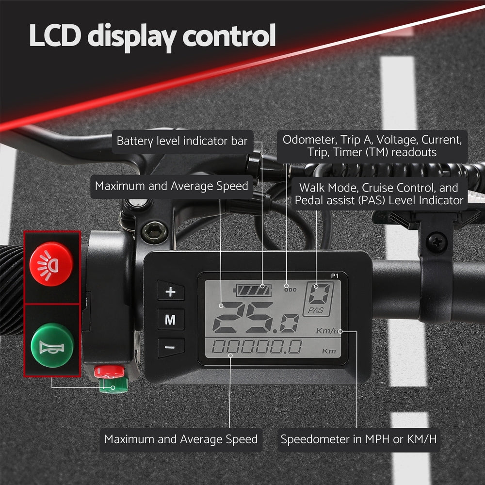 Looking for a hassle-free commute? Our Electric Bike is designed with the urban traveler in mind. With its quick folding design and high-quality features, this bike makes getting around town a breeze. The powerful 250W motor provides a smooth and swift ride, and with a 36V 10.4Ah rechargeable Li-ion battery, you can go up to 60km on a single charge. A Shimano 7-speed shifter and derailleur allow for comfortable control, while the high carbon steel frame and comfortable seat provide support and comfort. Features also include front and rear disc brakes, LCD display panel, and built-in headlight and reflector. The bike is even water-resistant for easy year-round use.