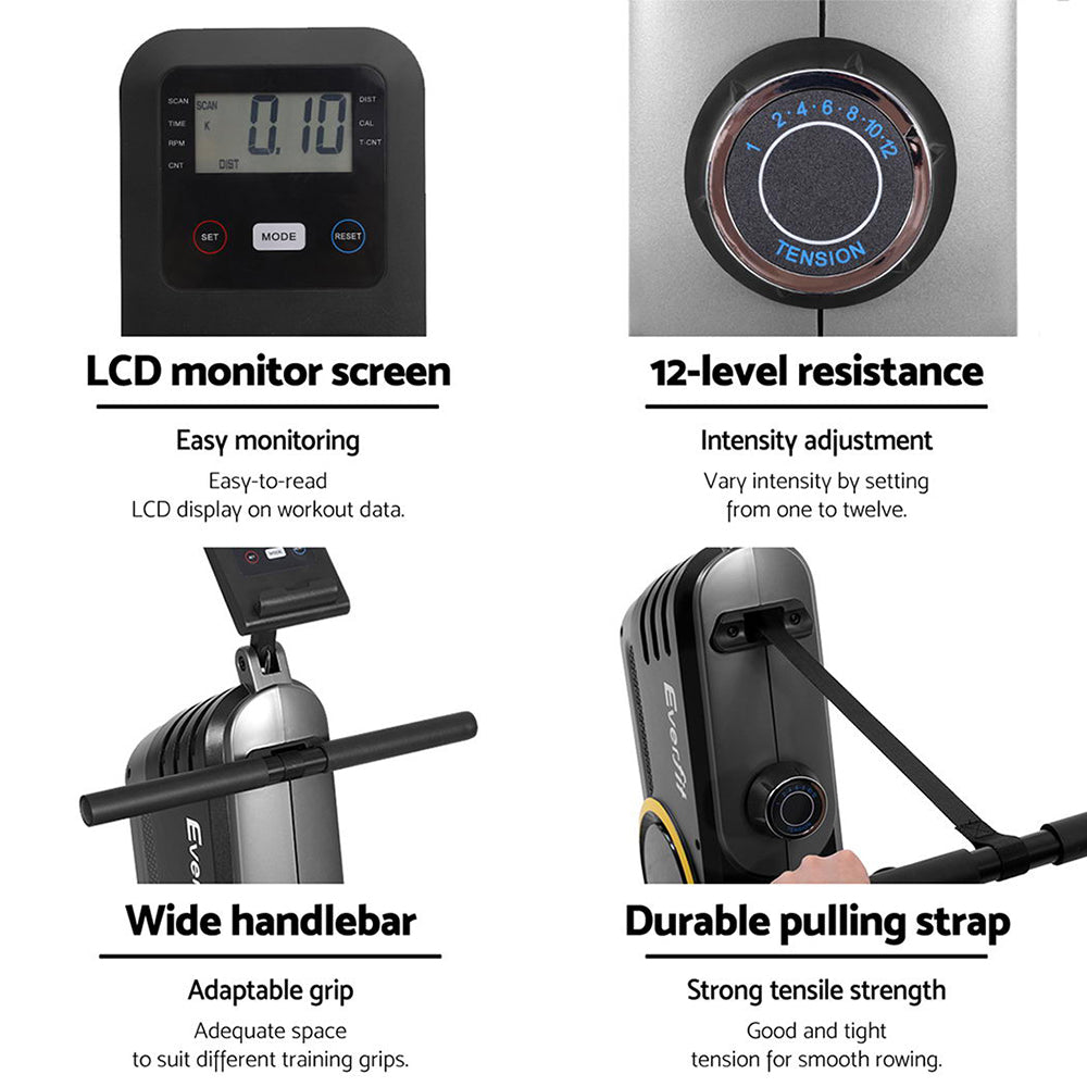 Everfit Rowing Machine 12 Levels Magnetic Rower Fitness Gym Cardio Workout
