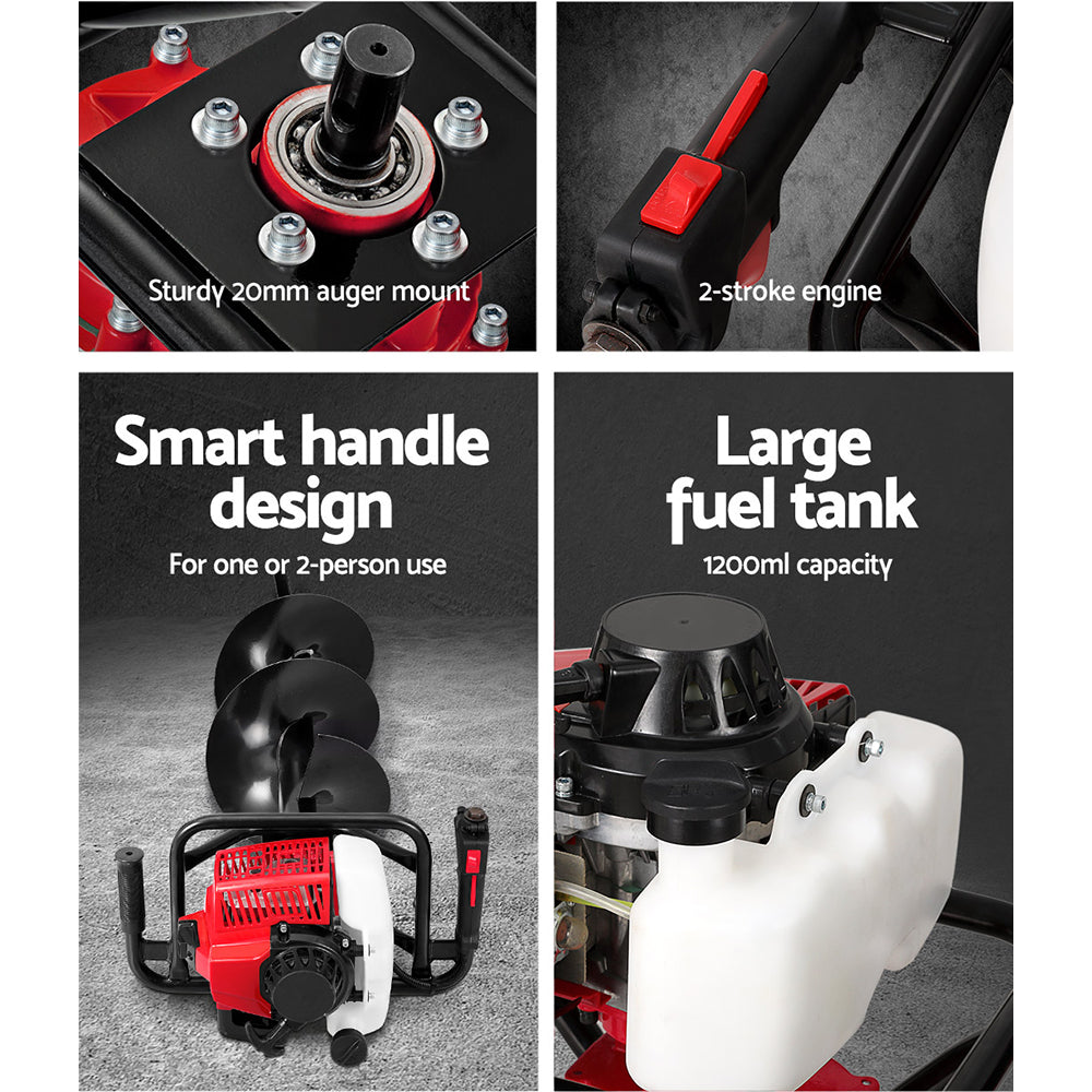 Giantz 92CC Post Hole Digger 300mm Petrol Drill Extension Auger Bits