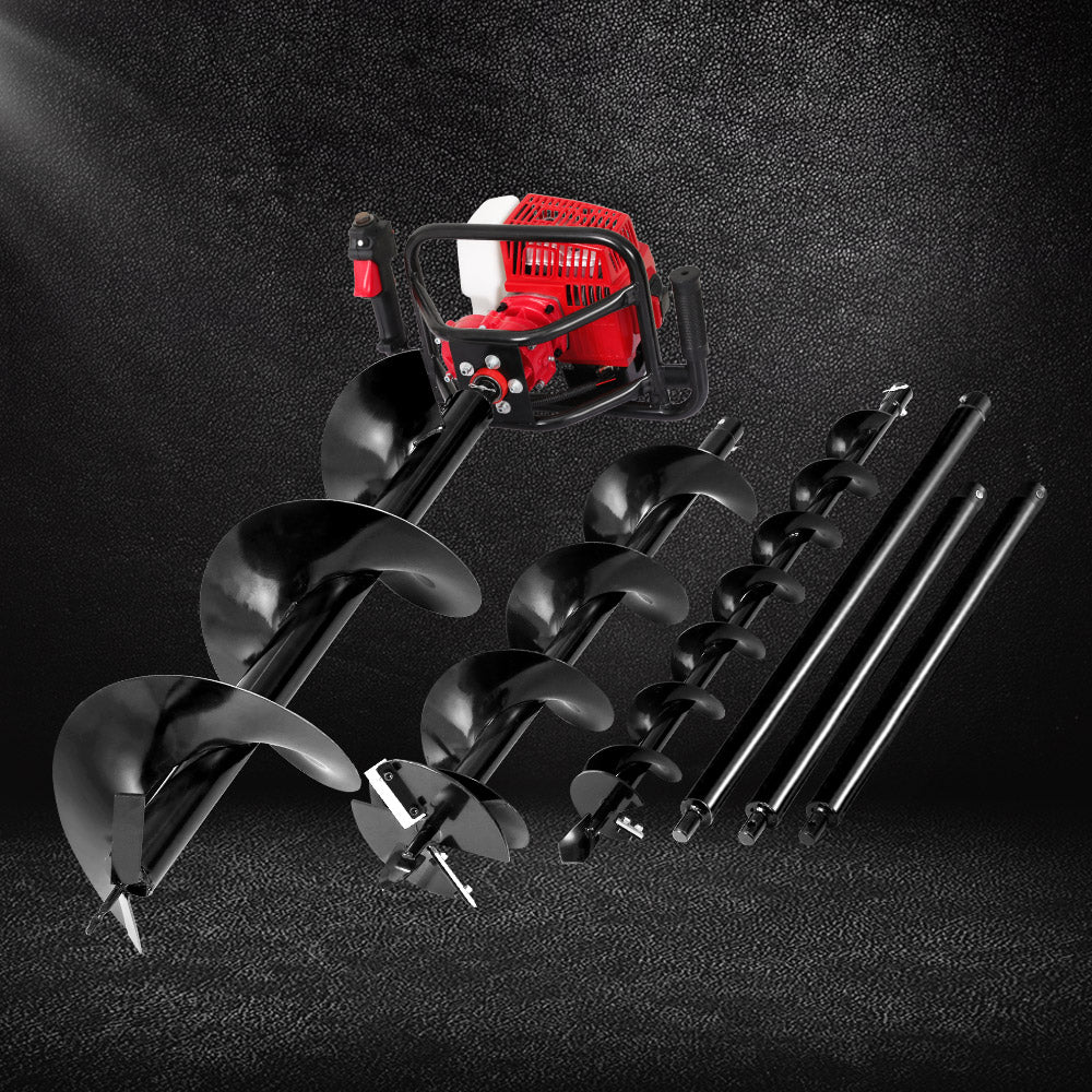 Giantz Post Hole Digger 92CC Petrol Motor Drill Extension Auger Bits Kits