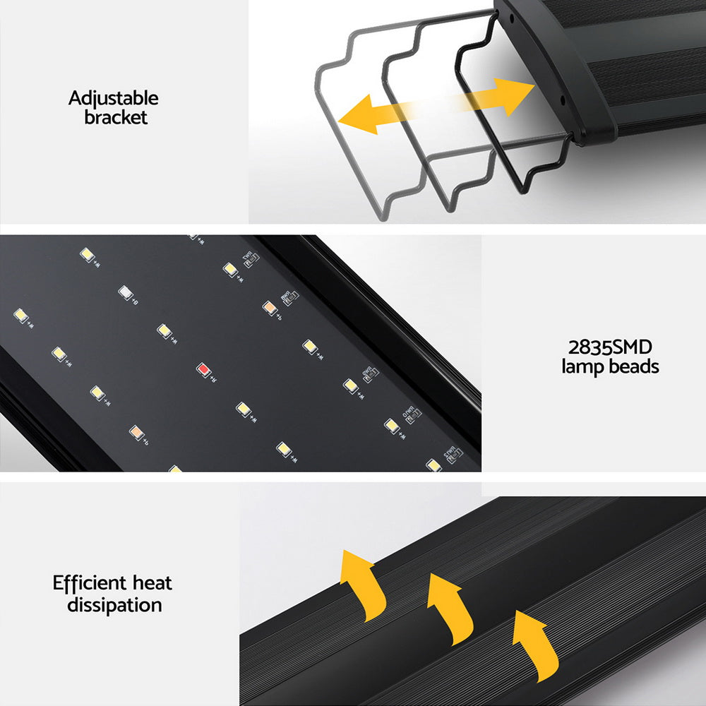 Introducing our i.Pet aquarium LED light, designed to enhance tank vibrancy with 5-colour LEDs. The adjustable bracket makes it suitable for various tank sizes, while utilizing efficient, cost-saving 2835 LED technology. This light is suitable for both freshwater and saltwater tanks.