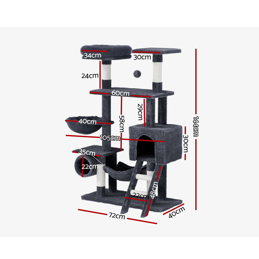 i.Pet Cat Tree 144cm Tower Scratching Post Scratcher Wood Condo Toys House Bed
