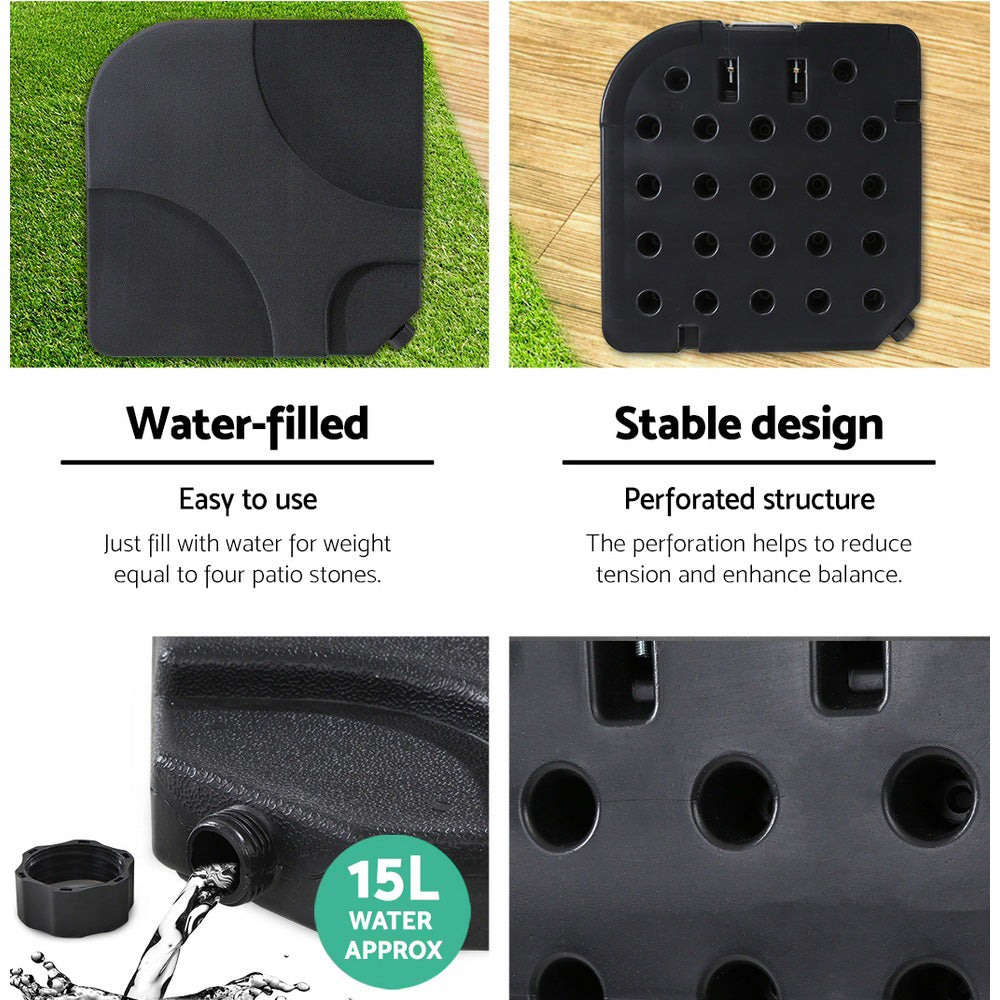Soak up the sun, while staying cool under our Instahut side post umbrella. Its robust steel frame supports an octagonal UV50+ canopy, ideal for the peak of summer. Made of water-resistant and wear-resistant polyester, it stands up to all sunny adventures. A water-fillable, portable base ensures beach-to-backyard versatility, while the washable canopy ensures freshness. Sunshine and shade, harmoniously blended for your summer escapades.