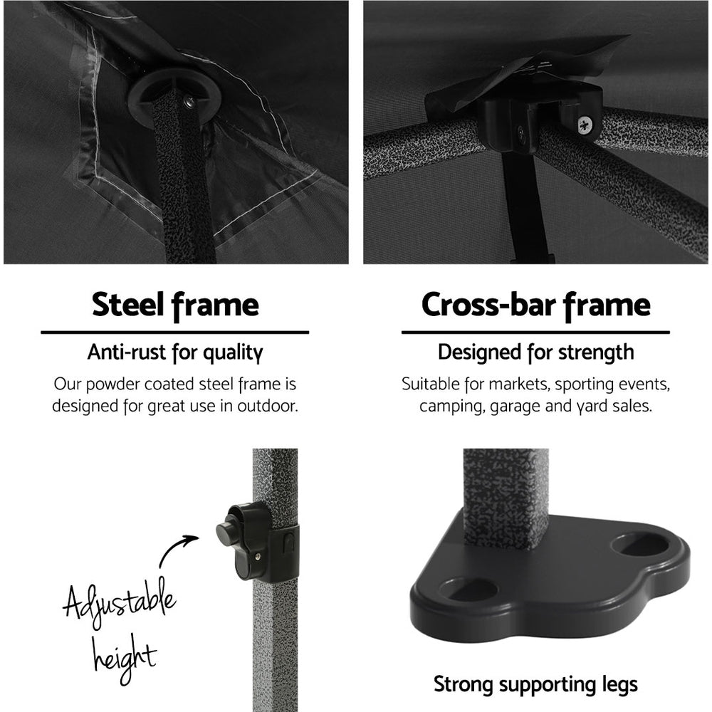 Instahut Gazebo Pop Up Marquee 3x3 Folding 500D Wedding Tent Base Pod Black