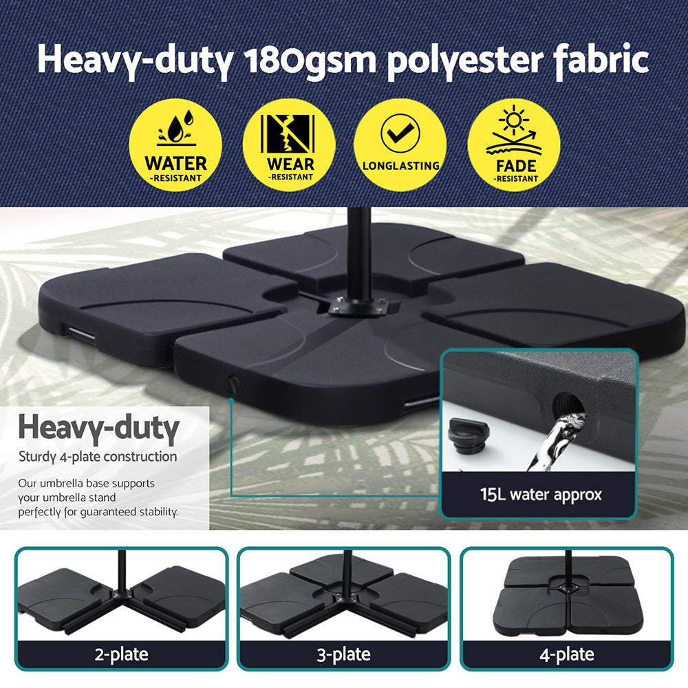 Instahut Outdoor Umbrella 3M Cantilever Beach LED w/Base Garden Shade Patio Navy