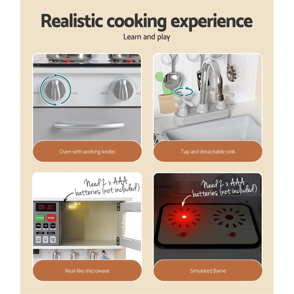 Keezi Kids Kitchen Play Set Wooden Pretend Toys Cooking Children Cookware Sink