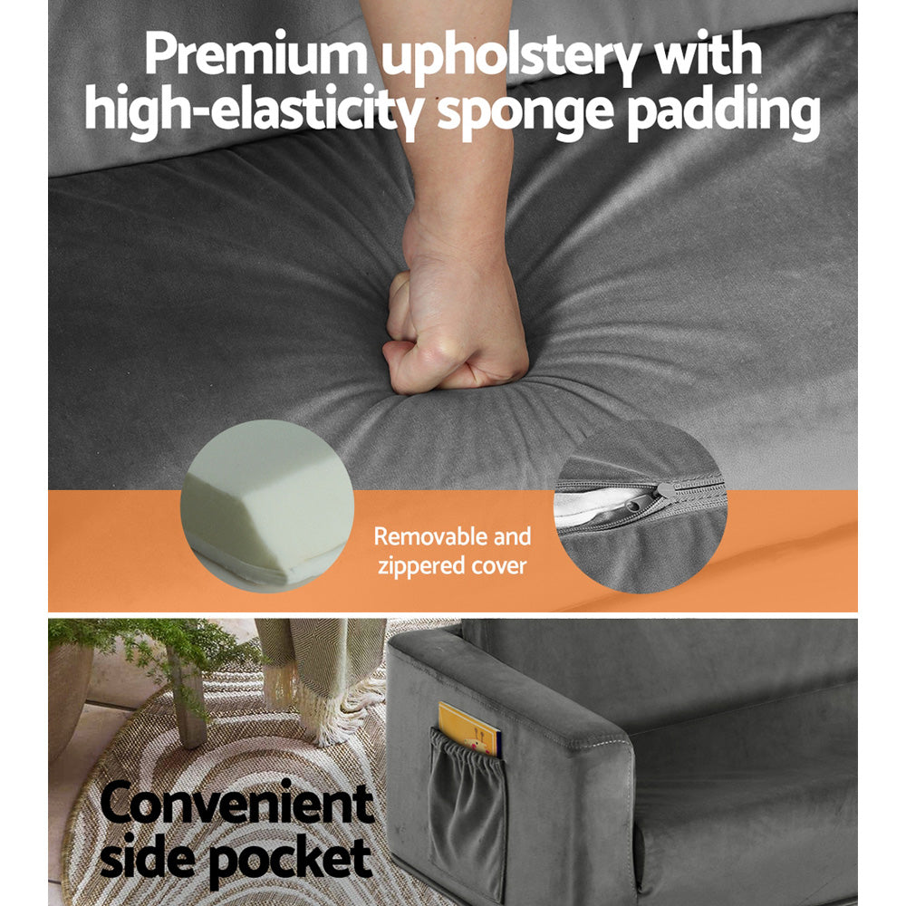 Keezi Kids Sofa 2 Seater Children Flip Open Couch Velvet Armchair Grey