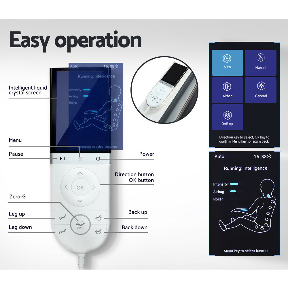 Using the latest smart massage technology, the Livemor Mirna Electric Massage Chair is designed to deliver an out-of-this-world massage experience. A deeply relaxing experience that rivals the professionals, all from the comfort of home. The extensive SL track provides a full body massage that follows the curve of your spine and extends below the thighs, leaving every muscle relaxed. The massage chair also has an automatic body scanning function that maps out the key areas of the neck and back for a consistent massage. Using 5 signature full-body automatic programs, 4 targeted modes, 3 levels of strength and speed adjustments, you can tailor the massage to your exact specifications. Not only that, but you can enjoy ultimate relaxation with a heated massage function, zero gravity position, and built-in Bluetooth speakers to listen to your favourite audiobooks and music. Why pay for the professionals when you can have the luxury of a premium massage in your living room? Get your Livemor Mirna Electric Massage Chair today.