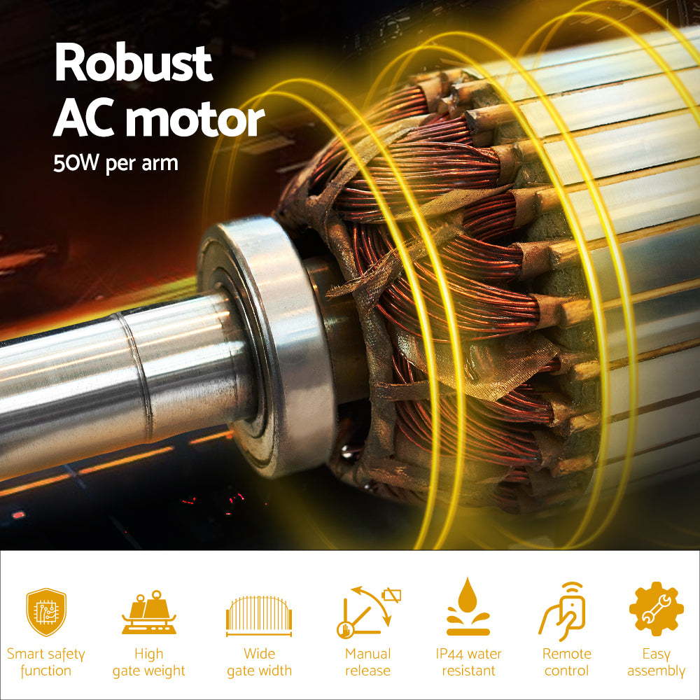 Lockmaster Dual Swing Gate Opener 40W Full Solar Power 600KG 10M