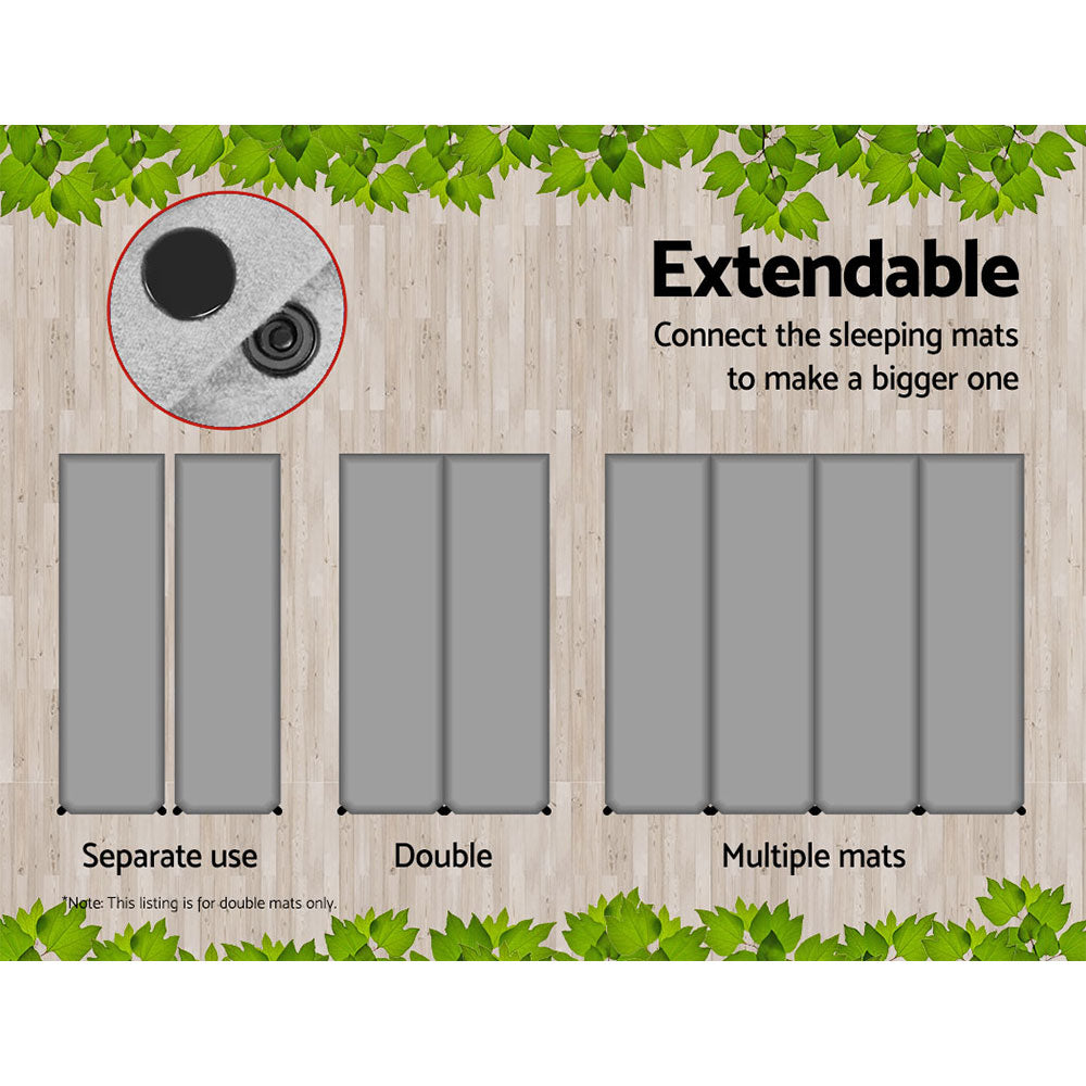 Weisshorn Self Inflating Mattress Camping Sleeping Mat Air Bed Double Set Grey