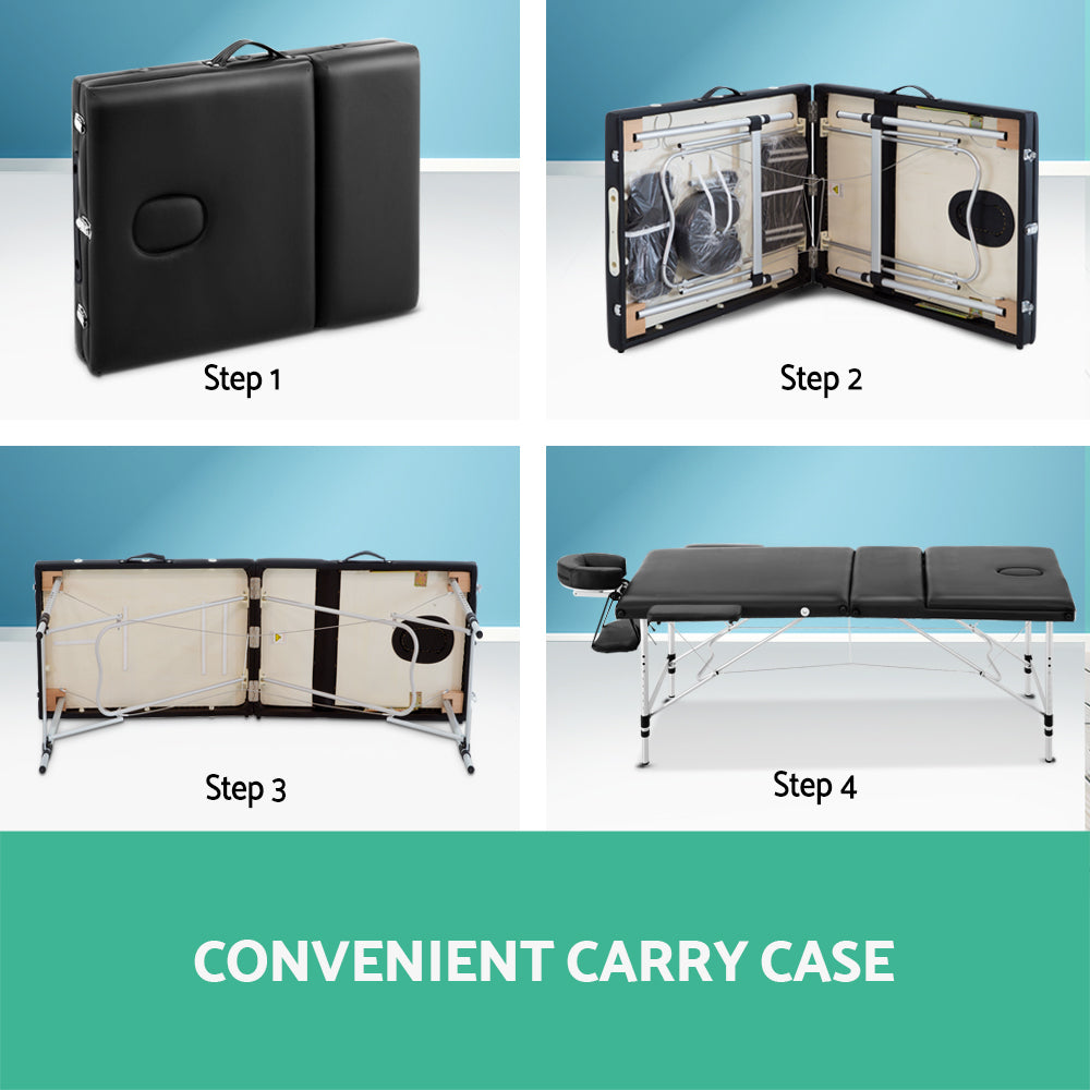 Zenses Massage Table 60cm Portable 3 Fold Aluminium Beauty Bed Black