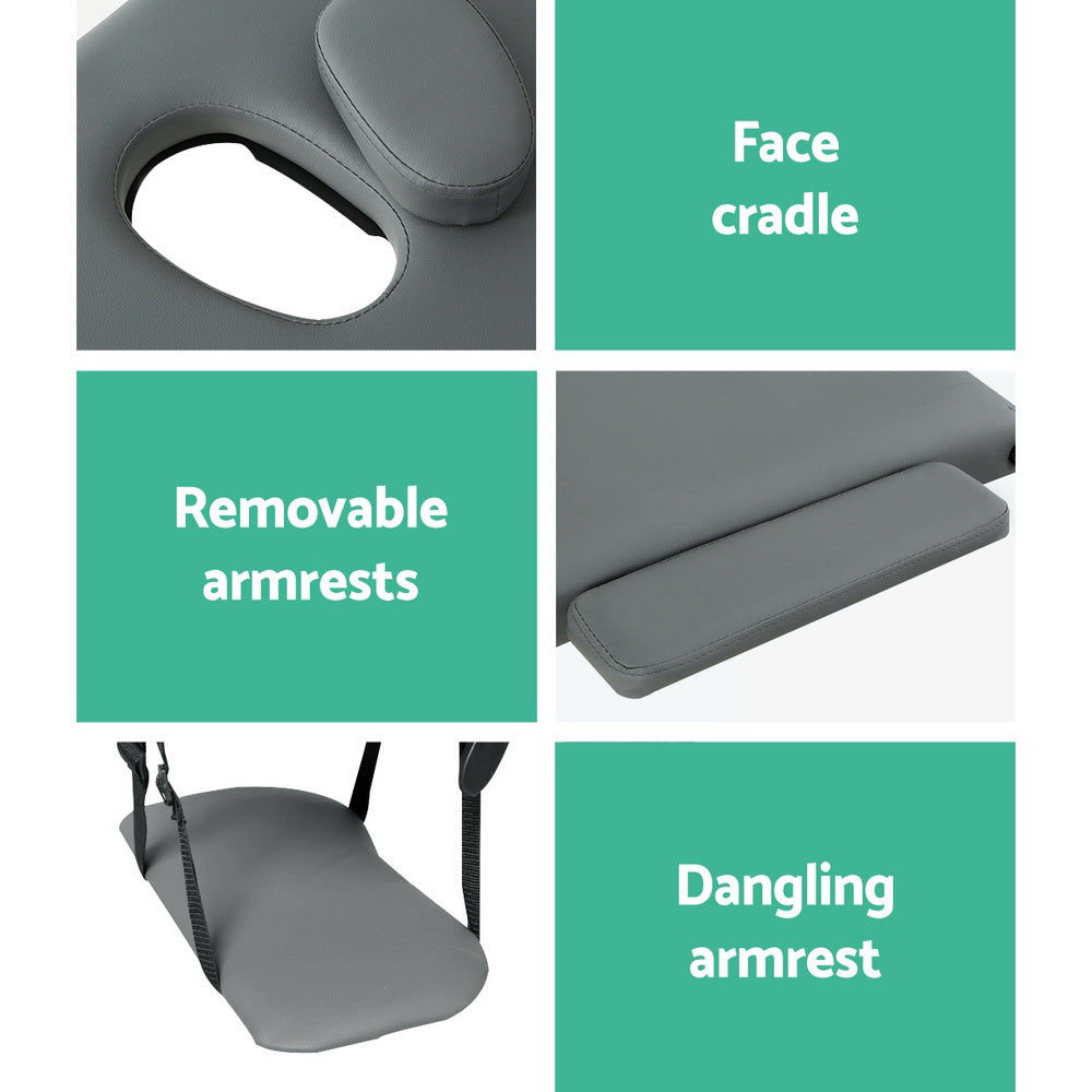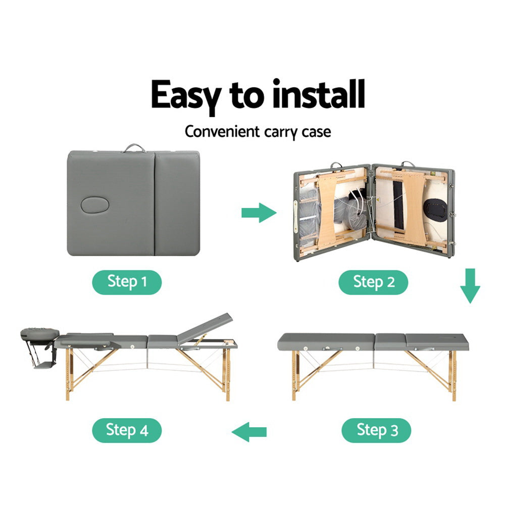 Zenses Massage Table 75cm Portable 3 Fold Wooden Beauty Bed Grey